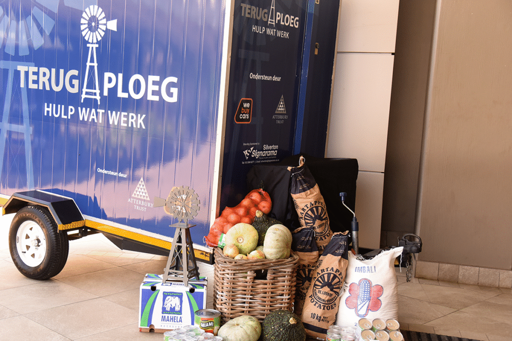 Terugploeg is ’n netwerk van weldoeners wie se skenkings verantwoordelik bestuur word om eerstens kos te verskaf aan weerlose Afrikaanse gemeenskappe en honger te bestry. Maar daar bestaan ook ’n groter droom – dat dit ’n volhoubare projek word wat ook werk kan verskaf aan mense uit hierdie gemeenskappe, sodat hulle weer kan hoop en droom van ’n beter toekoms. Hoop, respek, vaardighede en geleenthede is geweldig belangrik vir hulpbehoewendes.