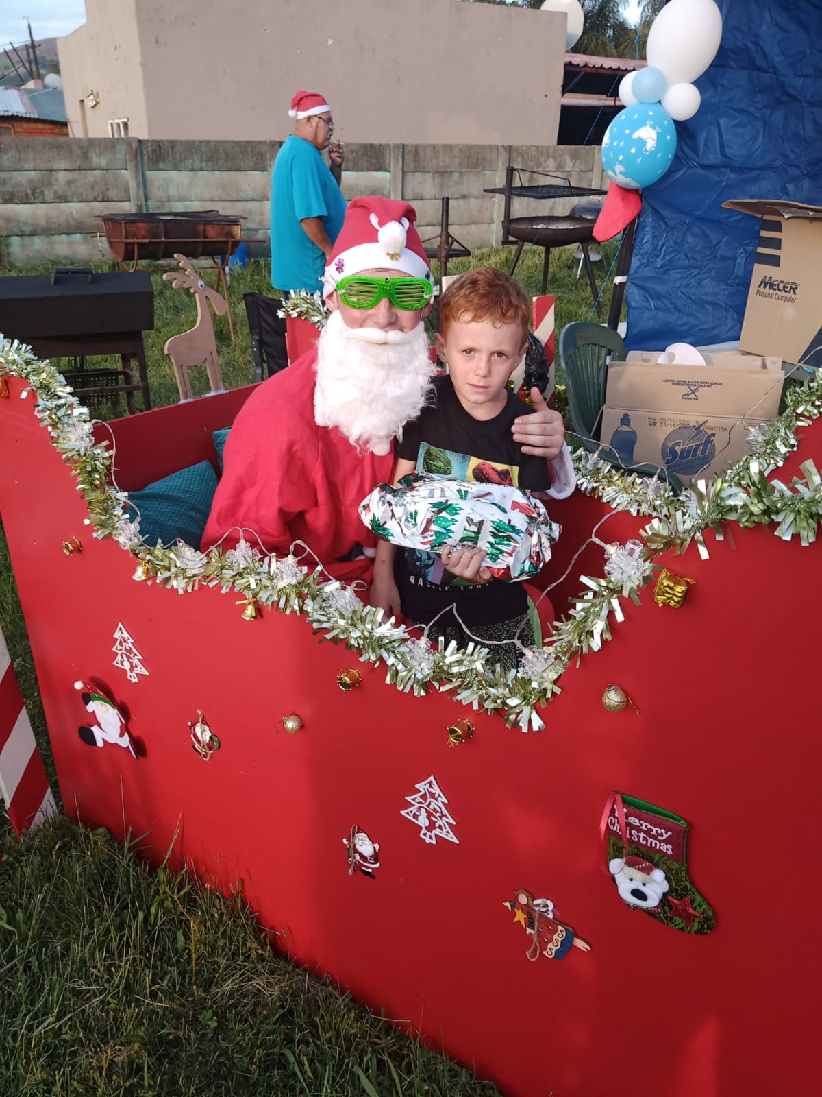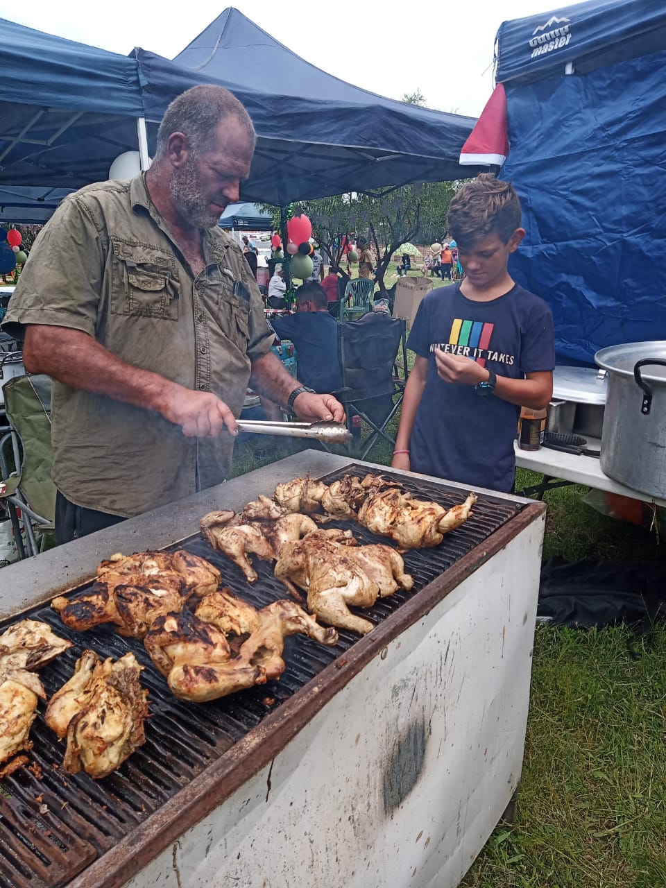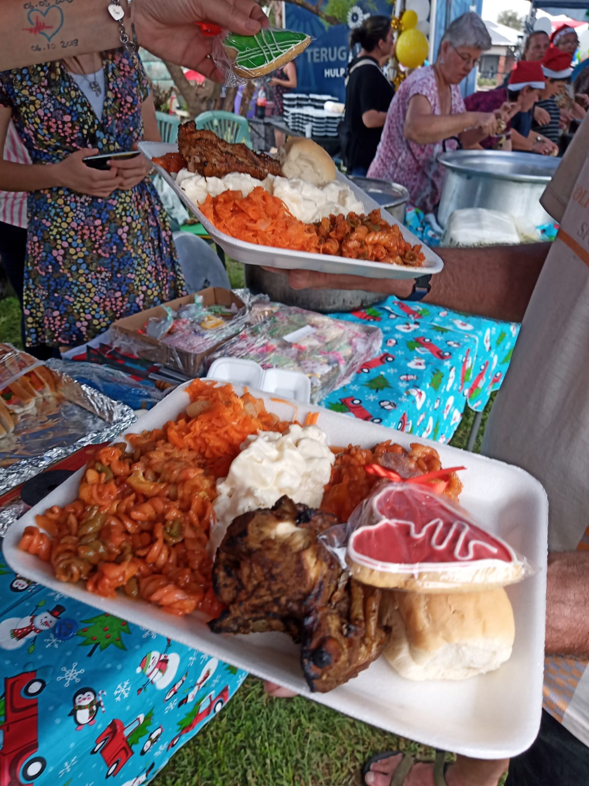 Ons het vir dié feestyd ’n Kerspartytjie op 16 Desember beplan en het hulp en wonderlike bydraes gekry van Terugploeg, en van Vibro en Tres Engineering. Atterbury Trust het gehelp met die insamel van kersgeskenke vir die kinders. Ons het ’n Kersete gekook met gebraaide hoender en ses slaaie en nagereg, en die gemeenskap het regtig saamgetrek om dit spesiaal te maak. Terugploeg het 30 hoenders geskenk en vir ons die Terugploeg-sleepwa geleen om die kos en geskenke te kan aanry. Ons het die parkie opgemaak met Kersliggies en -versiersels, daar was speletjies en die nooddienste in die area het vir Kersvader in ’n ambulans gebring om vir die kinders geskenkies uit te deel! Dit was ‘n wonderlike dag – omtrent 550 mense het gekom en ons kon vir hierdie hierdie mense wat so min het, weer die towerkrag van Kersfees wys.