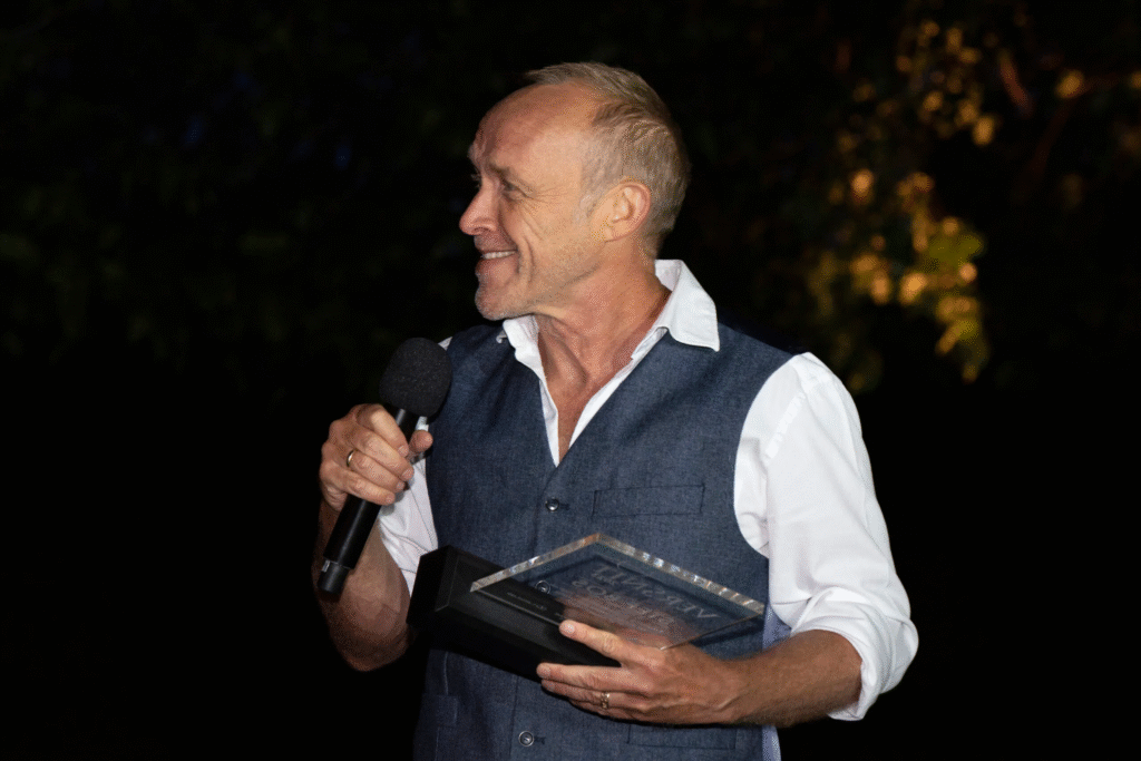 Stef Bos het vanjaar die toekenning ontvang en het dit met soveel grasie ontvang. Hy het sy storie gedeel – hoe Johannes Kerkorrel se Hillbrow hom na Afrikaans en Suid-Afrika toe getrek het, en verantwoordelik is dat hy ’n Afrikaanse vrou en drie Afrikaanse kinders het!